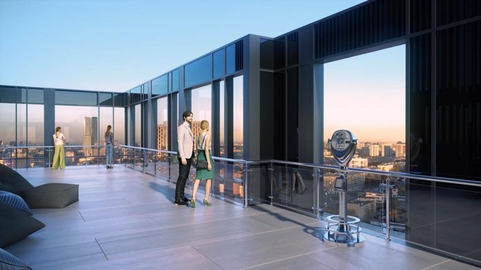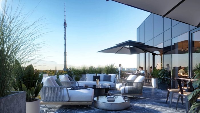 Специально для жителей башнях откроются смотровые террасы на крыше. Панорамные виды на город и парки, Останкинскую башню, ВДНХ, Ботанический сад и Москву-Сити впечатляют, заряжают энергией и дарят ощущение размаха.