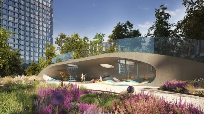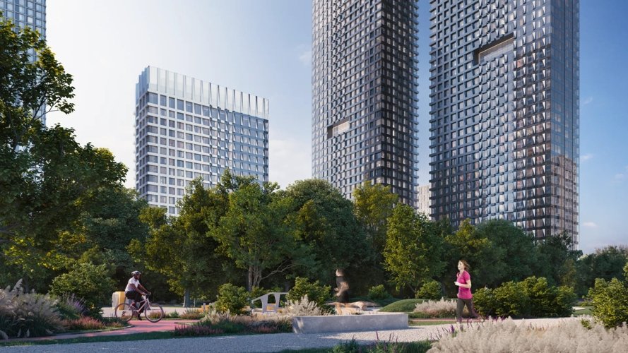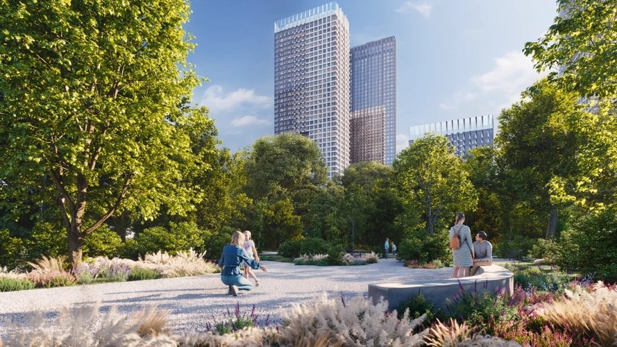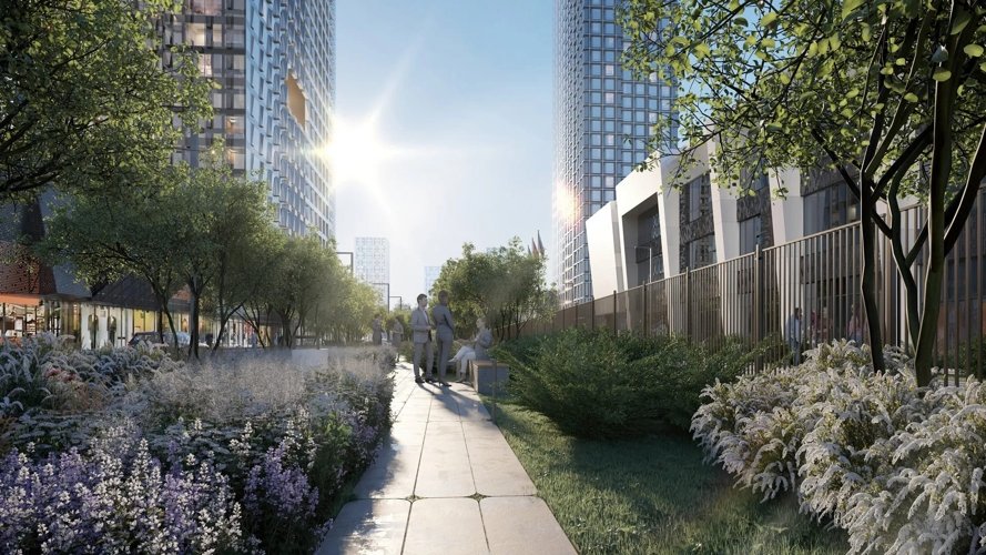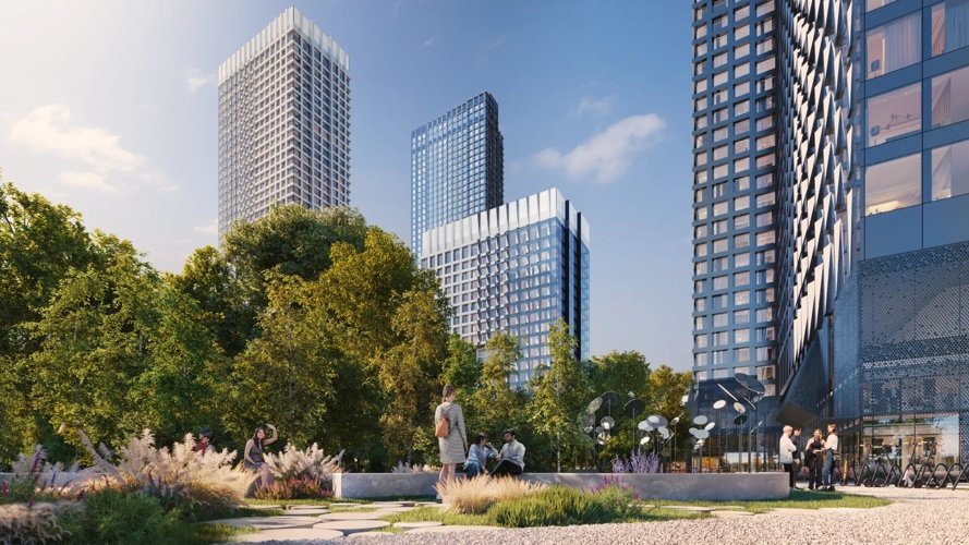 Футуристичные и монументальные башни Upside Towers станут новой урбанистической доминантой всего района.