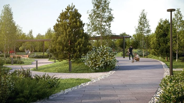 7 га территории для жизни в любом ритме: приватные дворы для уюта и встреч с близкими, зеленый бульвар для прогулок и вдохновения, парк 2,5 га с сенсорным садом для восстановления сил, игровые и спортивные площадки для активных дней. Здесь есть свой сценарий счастья для каждого жителя — от тишины до энергии движения.